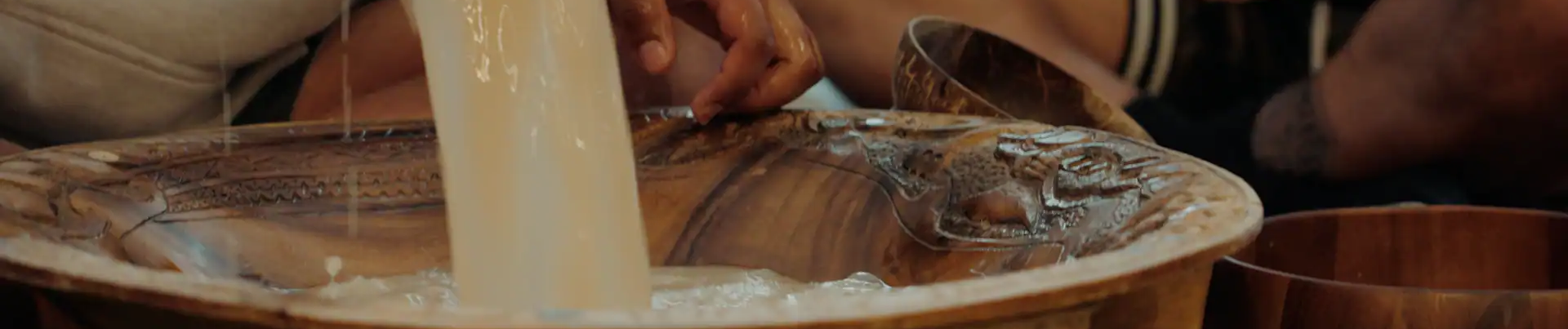 Traditional kava is prepared by placing the ground root powder into a strainer bag and kneading it in a bowl of cold water, in which the root’s active ingredients are released and the water is then consumed. Traditional kava has always been the only form that provides the full therapeutic effects, because it retains the complete spectrum of active constituents that make up the full living essence of the plant.